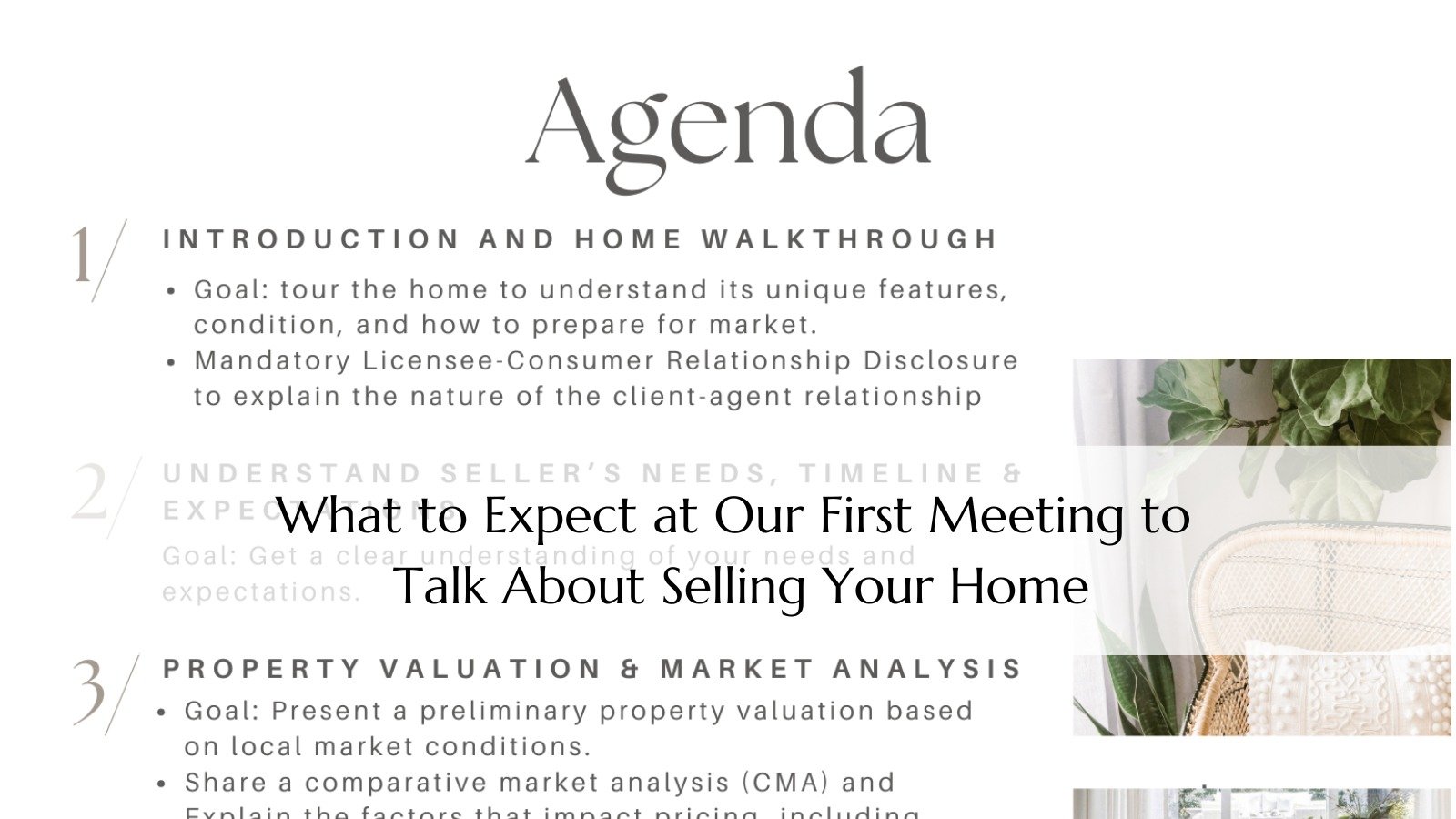 Selling your home is a significant decision, and having the right real estate agent by your side can make all the difference. If you’re wondering what to expect during our first meeting to discuss selling your home, here’s a breakdown of how the conversation will go and what we’ll cover: